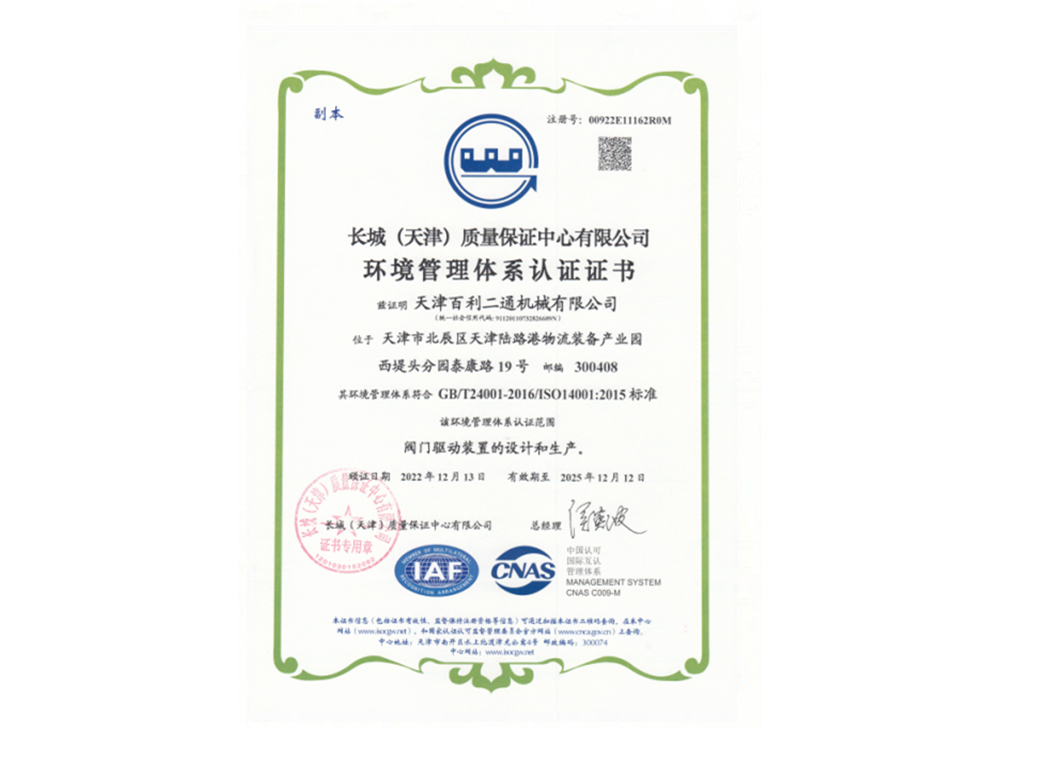 環(huán)境管理體系證證書