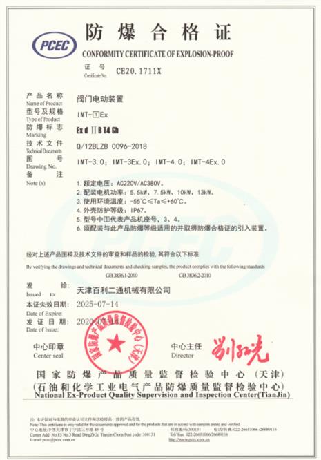 IMT3-4Ex防爆合格證