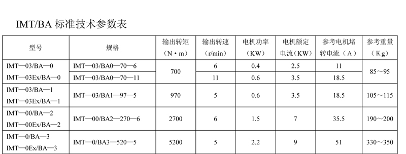 IMT/BA系列智能型電動裝置是IMT系列中小轉矩多回轉智能型電動裝置與BA圓錐齒輪減速器的一種組合型式,它適合閘閥、截止閥等多回轉閥門的驅動控制。IMT/BA智能型電動裝置具有以下特點:以較小轉矩規格的IMT電動裝置與BA減速器組合可獲得更大的輸出轉矩。在輸出轉速允許的條件下,選用該產品能夠提高所選電動裝置規格的通用性,便于產品的使用、維護。