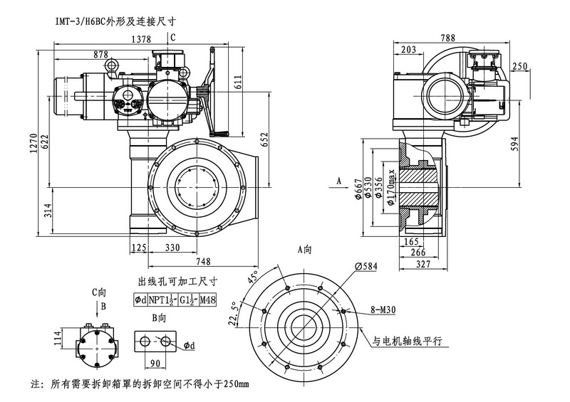 IMT/HBC系列智能型電動裝置是IMT系列多回轉智能型電動裝置與HBC蝸輪減速器的組合型式,它適合球閥、蝶閥等部分回轉閥門的驅動控制。 IMT/HBC智能型電動裝置具有以下特點:結構設計堅固可靠,產(chǎn)品規(guī)格齊全,驅動轉矩范圍大且動力輸出穩(wěn)定, 具有良好的自鎖性能。 HBC輸出軸結構獨特,裝有與閥桿連接的漸開線花鍵接頭,產(chǎn)品的安裝調試方便。