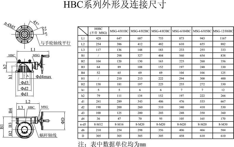 HBC系列閥門手動裝置是一種90°回轉型閥門驅動裝置。主要適用于蝶閥、球閥等類型閥門。它可以單獨與閥門組合使用,也可以與其它形式裝置組合作為90°回轉用的閥門電動裝置進行使用。該裝置與閥門的連接采用活動式連接件。與閥桿連接的形式及尺寸通常由用戶自行加工、方便用戶選用,安裝使用方便。