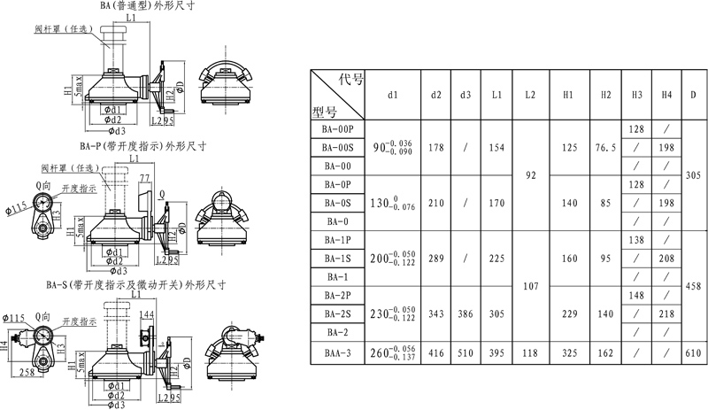 BA系列閥門(mén)手動(dòng)裝置,是一種多回轉(zhuǎn)閥門(mén)驅(qū)動(dòng)裝置,它適用于閘閥、截止閥等類(lèi)型閥門(mén)。該裝置內(nèi)部裝有閥桿螺母,而且在與閥門(mén)裝配后具有可方便地取出閥桿螺母的特點(diǎn)。閥桿螺母的螺紋形式及尺寸通常由用戶(hù)根據(jù)所配閥門(mén)自行加工。整機(jī)傳動(dòng)效率高,安裝使用方便。