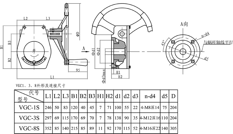 VGC系列閥門手動裝置是一種90º回轉型閥門驅動裝置。主要適用于蝶閥、球閥、旋塞閥等類型閥門。該系列產品結構設計簡單,體積小,重量輕,安裝使用方便,用戶可以根據不同需要選擇手輪安裝位置。當用戶需要樣本以外的連接形式和尺寸時請在訂貨時說明,我公司將滿足您的要求。