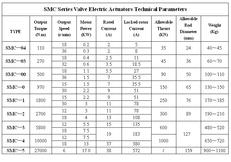 The SMC series which is introduced Limitorque technology from USA is a kind of muti-turn valve electric actuator. It has been widely used to petroleum, chemical engineering ,metallurgy, electric power ,military ,municipal ,light industry ,food and other fields. Customers can control one machine or multiple machines intensively. It is possible to control a machine locally or remotely. This series has a lot of type specifications such as general type, explosion-proof type, integrated type, integrated explosion-proof type, high temperature and high speed type, radiation-proof type, auto-regulation type, bus control type and so on. Company also can produce submerged type. Cold-resistant type and ship and submarine type are dedicated type on customers' requests.