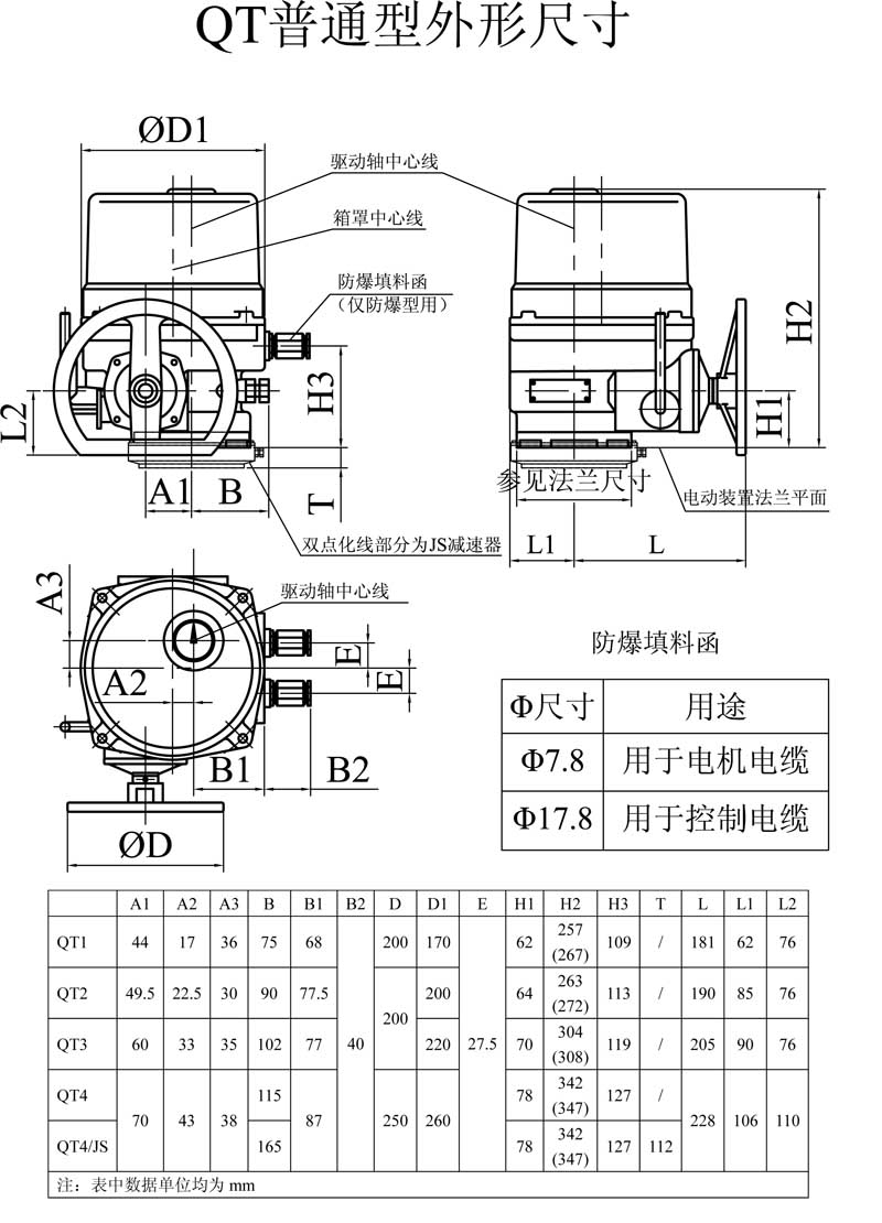 QT1QT4型部分回轉(zhuǎn)閥門電動(dòng)裝置是我公司最新研制的換代型產(chǎn)品。適用于控制蝶閥、球閥、旋塞閥等做90°回轉(zhuǎn)的閥門。該產(chǎn)品替代同規(guī)格的QB系列產(chǎn)品,體積小、重量輕、具有高效率、高可靠性、高防護(hù)性能、低噪音等特點(diǎn)。可現(xiàn)場(chǎng)操作,也可遠(yuǎn)距離控制。可廣泛用于石油、化工、發(fā)電廠、水處理、造紙等各行業(yè)。該產(chǎn)品的防護(hù)等級(jí)為IP67,隔爆型產(chǎn)品(型號(hào)中有Ex)的隔爆等級(jí)為dBT4