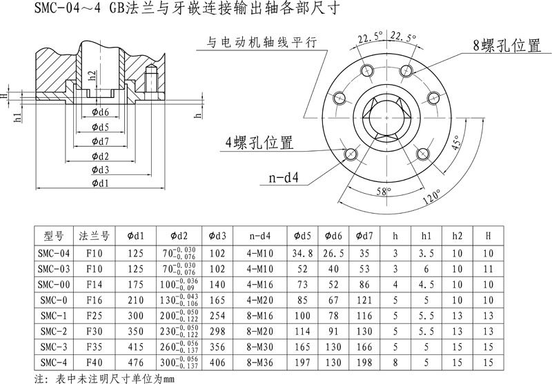 SMC-04~4 GB法蘭與牙嵌連接輸出軸各部尺寸