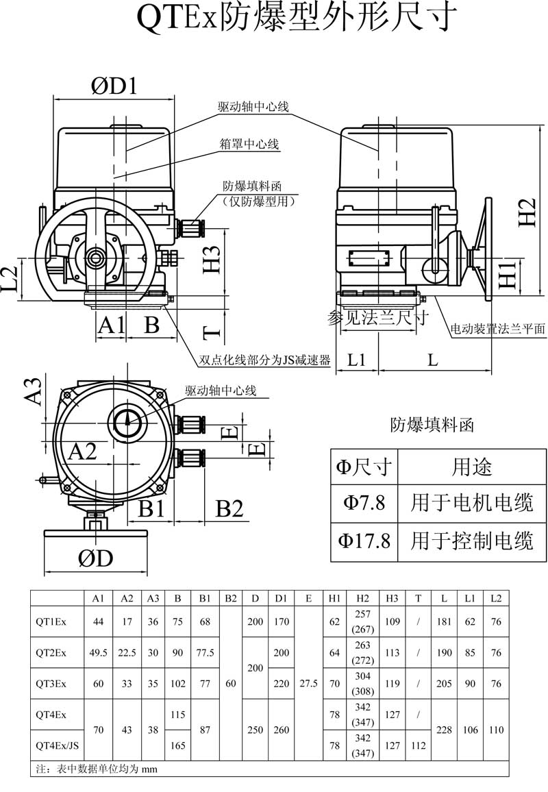 QT1~QT4型部分回轉(zhuǎn)閥門電動(dòng)裝置是我公司最新研制的換代型產(chǎn)品。適用于控制蝶閥、球閥、旋塞閥等做90°回轉(zhuǎn)的閥門。該產(chǎn)品替代同規(guī)格的QB系列產(chǎn)品,體積小、重量輕、具有高效率、高可靠性、高防護(hù)性能、低噪音等特點(diǎn)。可現(xiàn)場(chǎng)操作,也可遠(yuǎn)距離控制。可廣泛用于石油、化工、發(fā)電廠、水處理、造紙等各行業(yè)。該產(chǎn)品的防護(hù)等級(jí)為IP67,隔爆型產(chǎn)品(型號(hào)中有Ex)的隔爆等級(jí)為dⅡBT4。