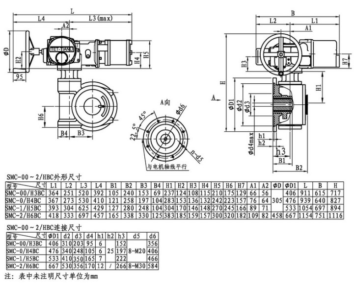 SMC/HBC系列電動裝置是SMC系列多回轉(zhuǎn)電動裝置與HBC蝸輪減速器的組合型式,它適合球閥、蝶閥等部分回轉(zhuǎn)閥門的驅(qū)動控制。SMC/HBC電動裝置具有以下特點:結(jié)構(gòu)設(shè)計堅固可靠,產(chǎn)品規(guī)格齊全,驅(qū)動轉(zhuǎn)矩范圍大且動力輸出穩(wěn)定, 具有良好的自鎖性能。 HBC輸出軸結(jié)構(gòu)獨特,裝有與閥桿連接的漸開線花鍵接頭,產(chǎn)品的安裝調(diào)試方便。