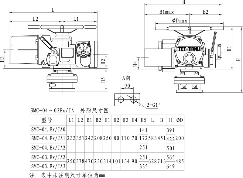 SMC/JA系列閥門電動裝置是部分回轉型閥門電動裝置,適用于球閥、蝶閥等類型閥門以及電動風門。其結構形式為組合式,由SMC多回轉電動裝置與JA部分回轉減速裝置相組合而成。該系列產品所適用的環境條件、溫度、濕度、海拔、防護等級均能達到SMC相應規格產品的水平。