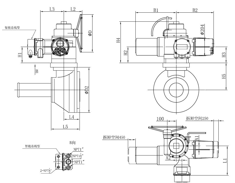 IMC/BA系列閥門電動裝置是一種組合型多回轉閥門電動裝置。它適用于閘閥、截止閥等類型的閥門。BA系列產品是可同時承受轉矩和軸向推力(通常稱為扭矩推力型)的圓錐齒輪閥門驅動裝置。其傳動型式可以滿足右旋手動操作閥門為“關”的標準要求,結構緊湊且大圓錐齒輪便于設置內部有一定直徑的貫通孔輸出軸,可使明桿閥門的閥桿在開啟時從輸出軸的內孔伸出。BA系列產品可與中小轉矩規格的多回轉電動裝置組合成為較大輸出轉矩規格的組合式多回轉閥門電動裝置。